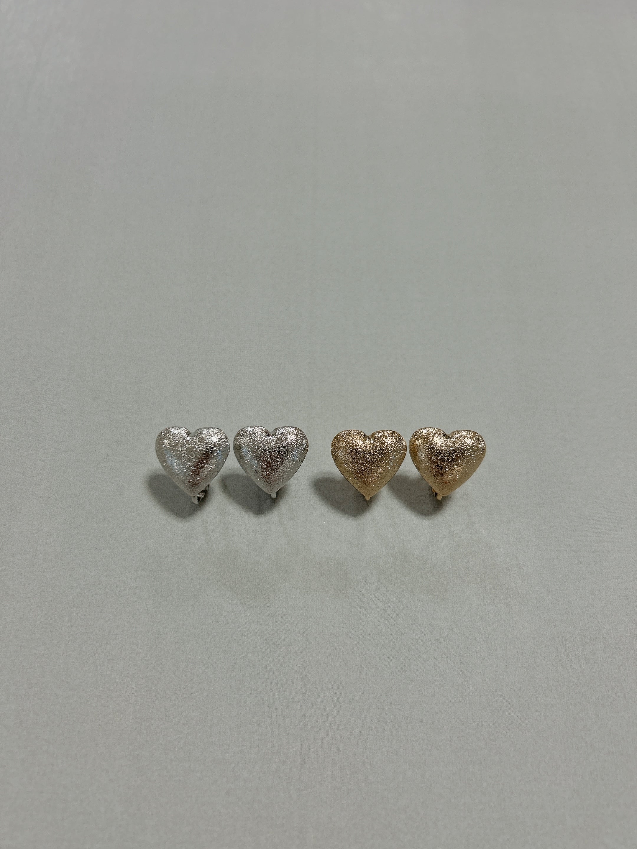 ぷっくりとしたシルエットが可愛いシャインメタルハートイヤリング。